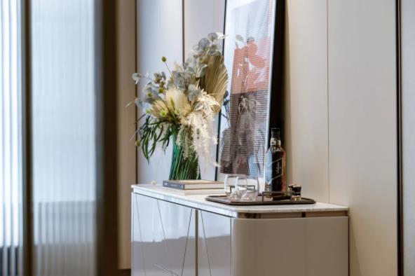 空間設(shè)計應(yīng)是對當(dāng)代美好生活的引領(lǐng),以新銳生活方式出發(fā),引入自然,藝術(shù),D2戶型以米咖色系為主色調(diào),影木與藝術(shù)捫皮精心選材,細(xì)致考究的工藝,光影疊層變幻,以繁為簡的線條賦予空間力量之美,完美的收納空間滿足生活的需求的同時具備空間的美學(xué)感官,更體現(xiàn)精致生活的態(tài)度!