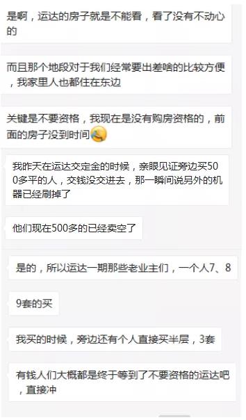 “運達的房子就是不能看,看了沒有不動心的”,“不要資格太好了,直接沖”。