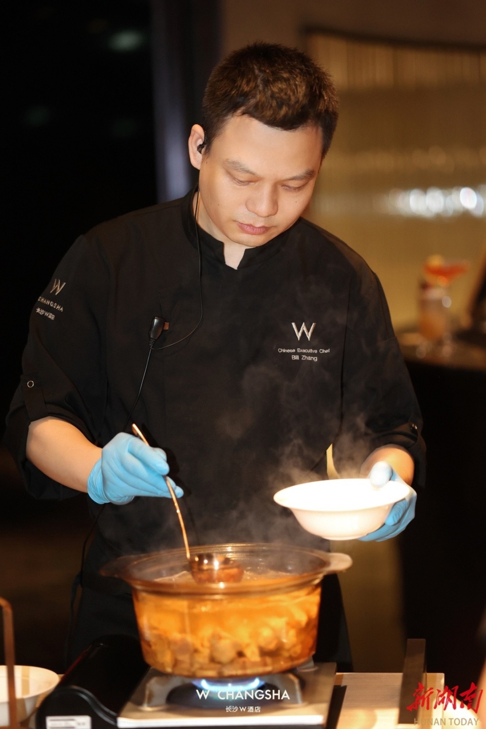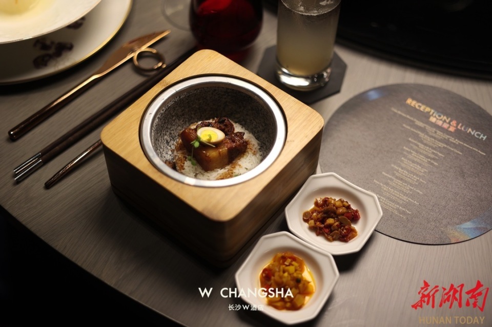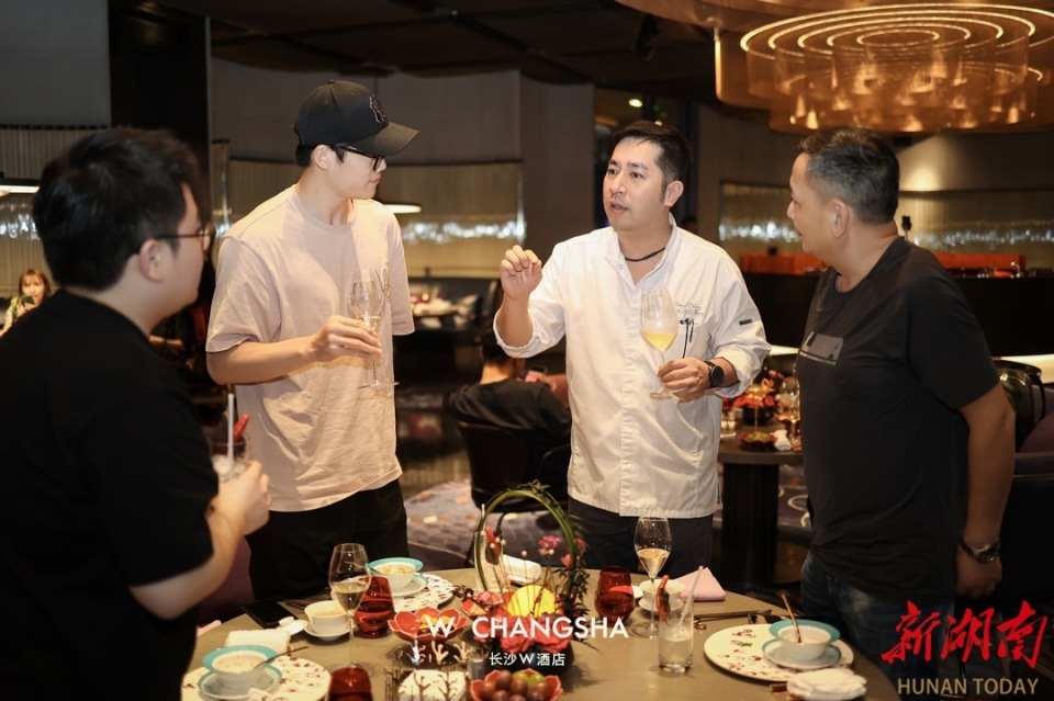 當(dāng)晚,廚藝總監(jiān)Daniel準(zhǔn)備了九道式晚宴的菜品,每道菜品都如藝術(shù)品般兼具美感與口感,自制雞火腿吊文火響螺湯,入口咸鮮清香,咸香的雞火腿搭配鮮美的響螺經(jīng)文火慢烹,能更好的激發(fā)食材本身的甜美柔嫩;黑蒜醬炙烤牛肋排,以文火將澳洲谷飼牛肋排煨至酥爛,輔以醇厚的黑蒜醬汁調(diào)味,牛肉味濃郁,搭配紅心番薯,口感更加豐富有層次。主廚還根據(jù)每道菜的口感與特色,搭配了四款不同風(fēng)味的酒水,餐酒的融合讓當(dāng)晚的美食品鑒更加出彩。Daniel說:“星艷中餐廳的每一道菜肴都代表了我們廚藝團(tuán)隊(duì)對美食的熱愛與傳承。我們希望通過這次品鑒晚宴,讓來賓們充分感受到長沙W酒店星艷中餐廳的特色和品質(zhì),品味湖湘菜肴之美。”